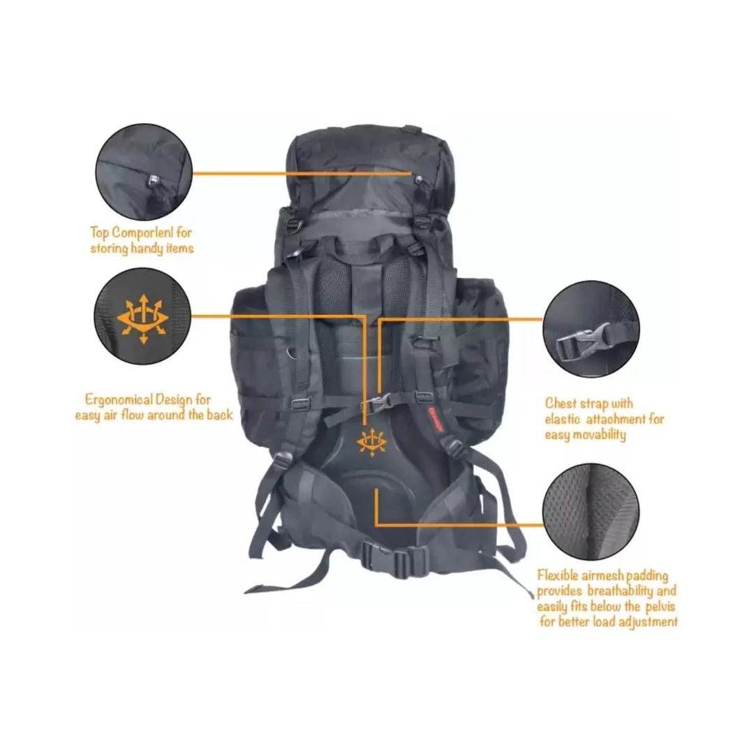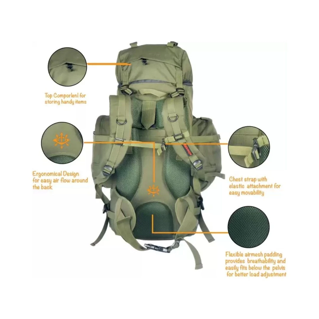 Usage: Ideal for long duration hikes lasting more than 15 days and for carrying luggage on motorcycles and cars; Army Grade