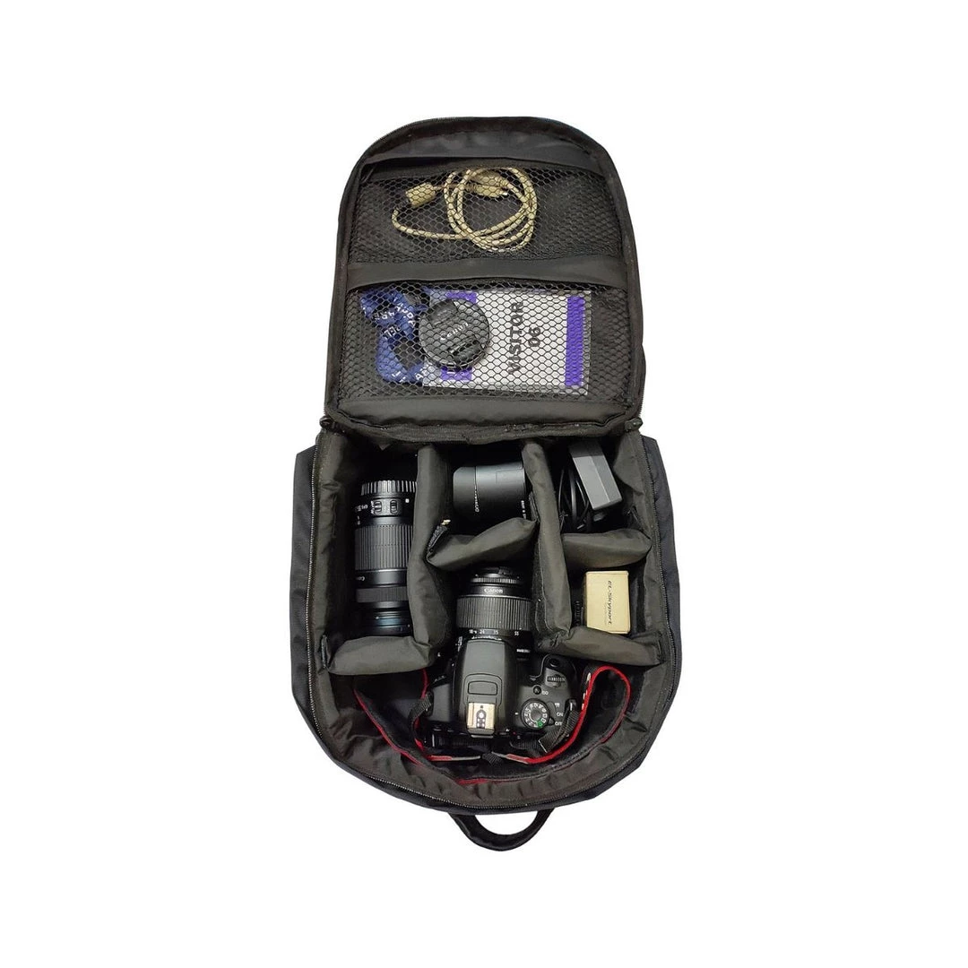| Storage for: | Camera lenses, Batteries, Data Storage Devices, Data Cables, Chargers, DSLR Camera, Tripods on the side loops, etc. |