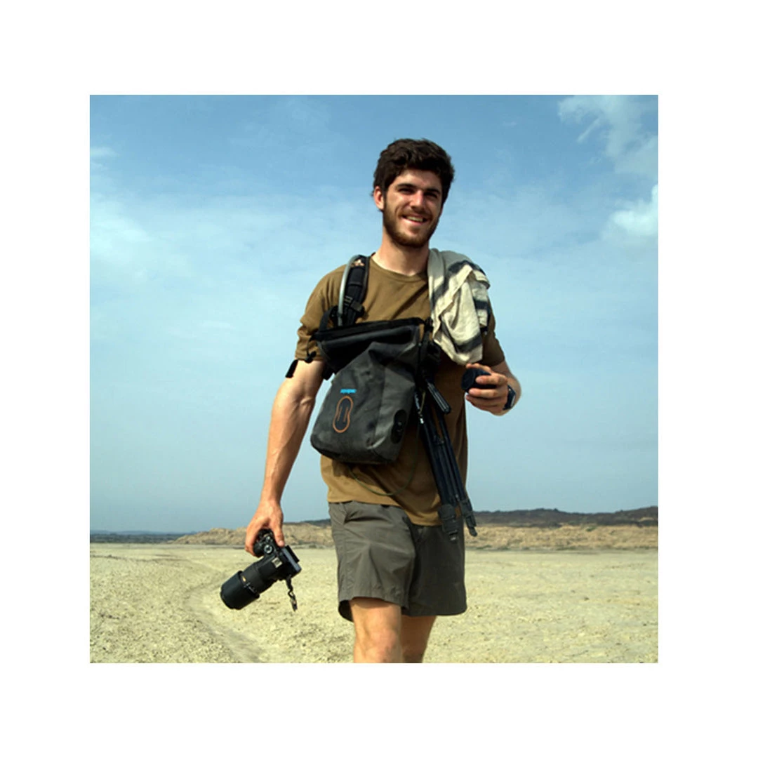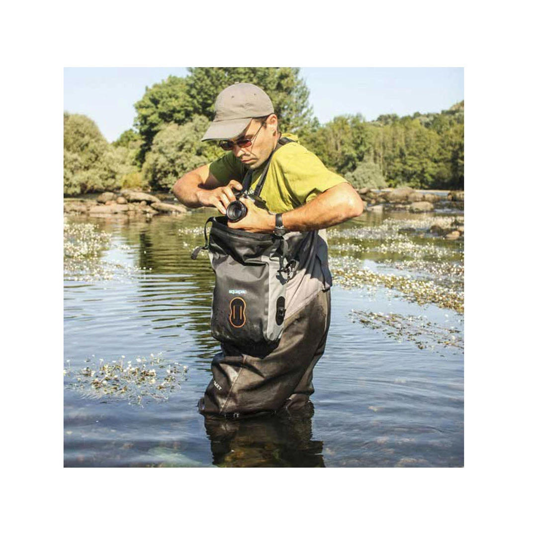 The roll-seal system used on this Aquapac has been used successfully on drybags for years. With a very simple 3 or 4 folds of the opening and then clipping 2 buckles in place, you can guarantee that the hardest rain or spray will be kept off your expensive gear. Whilst we don’t recommend that you submerge our Stormproof pouches, they should also protect against accidental dropping into puddles if they’re retrieved quickly.
