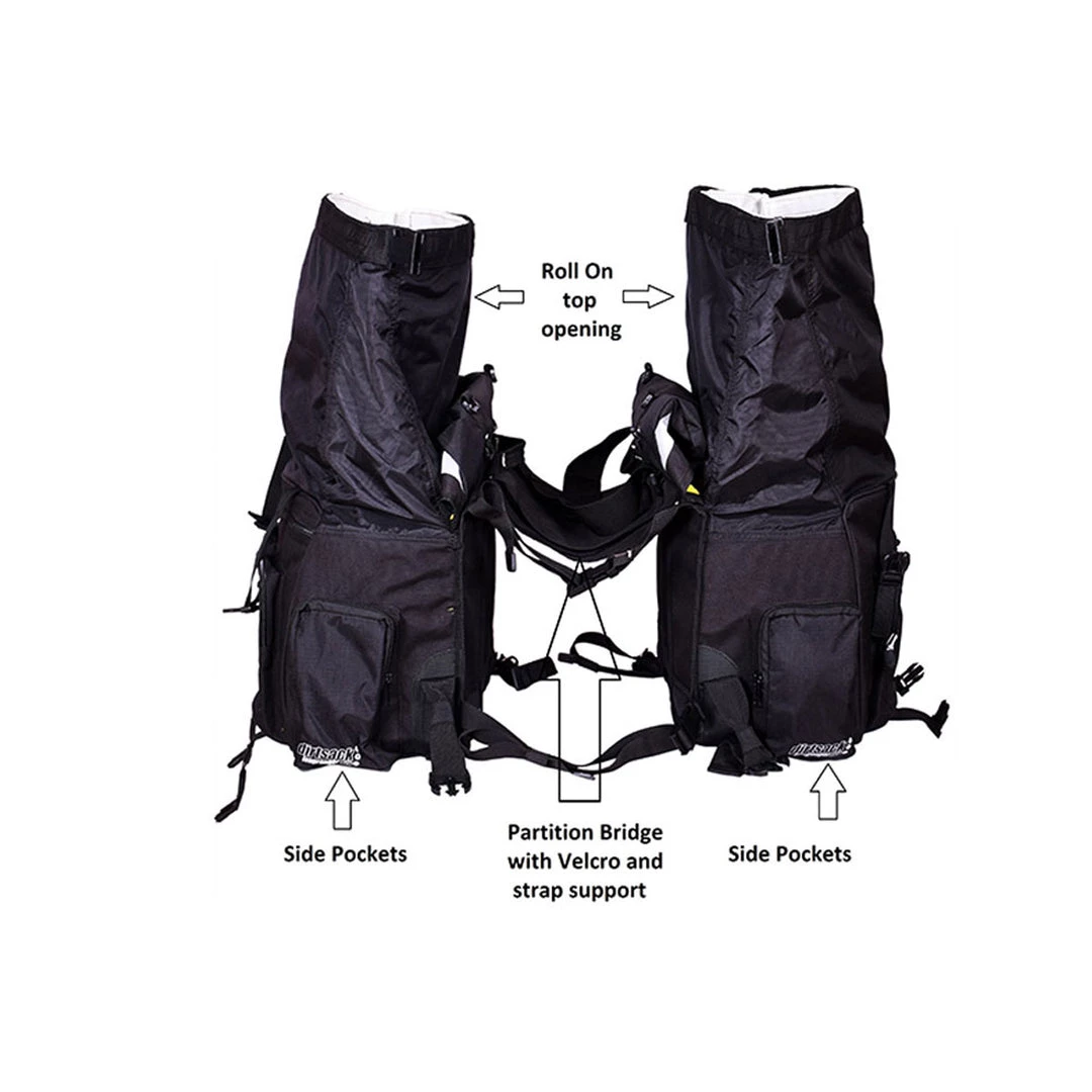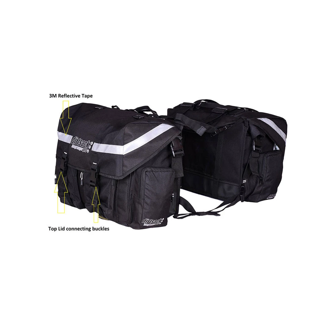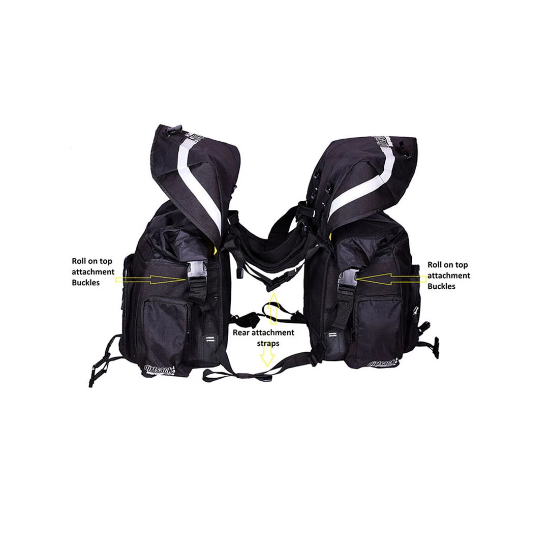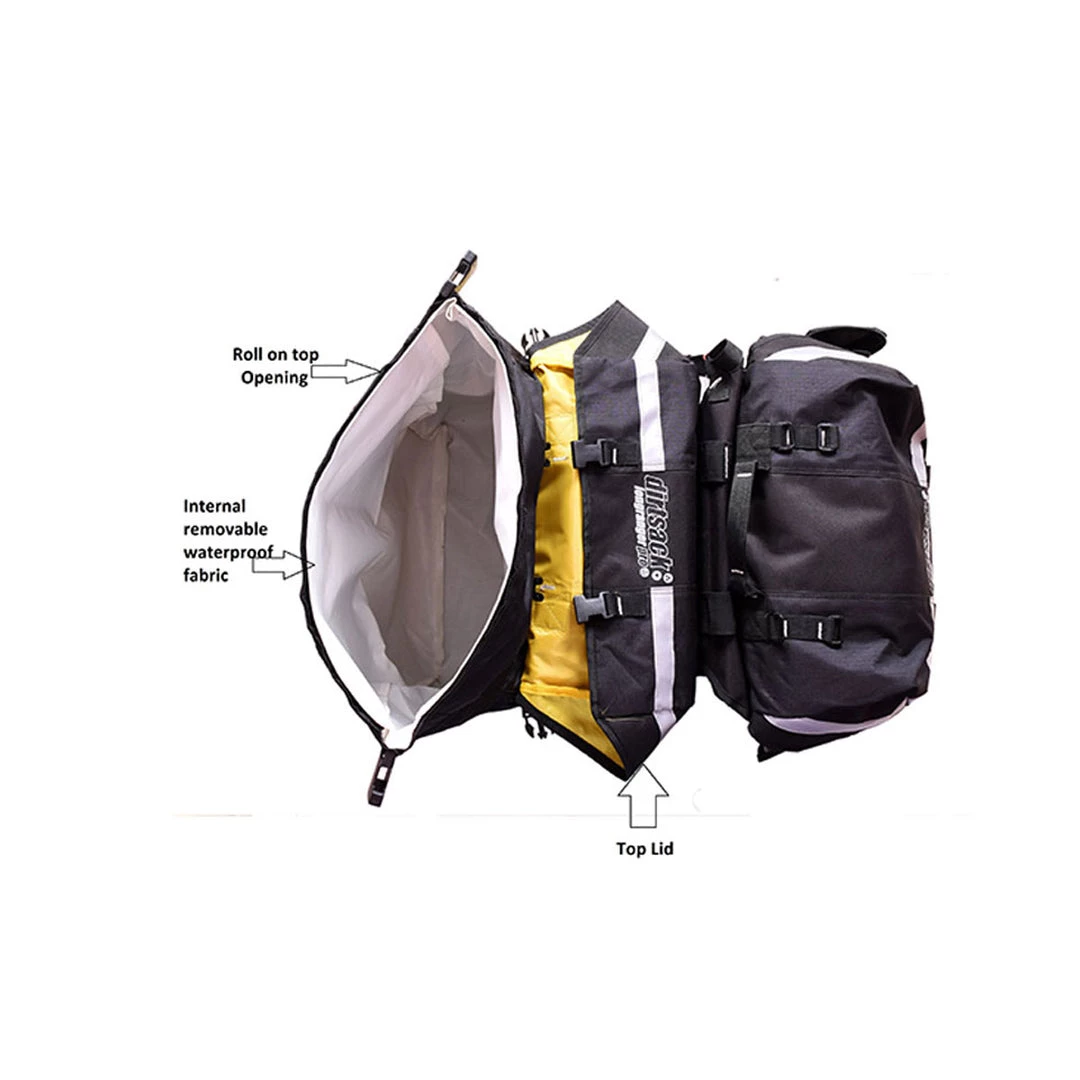 The LONGRANGER PRO – now re-engineered as a 100% waterproof saddle-bag with integrated roll-top design & removable Drybags in the compartments for both dry & wet weather conditions, & with features like automotive grade straps & buckles, mounting / restraining straps, adjustable saddle-connector & a sufficiently larger volume capacity for long hauling.