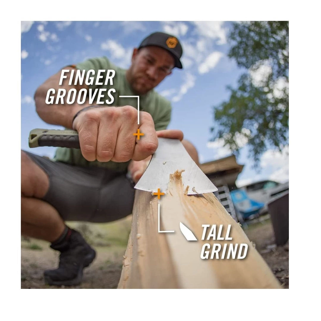 - Exaggerated finger grooves in the handle allow for incredible edge control while choking up to handle detail work and precise cuts.