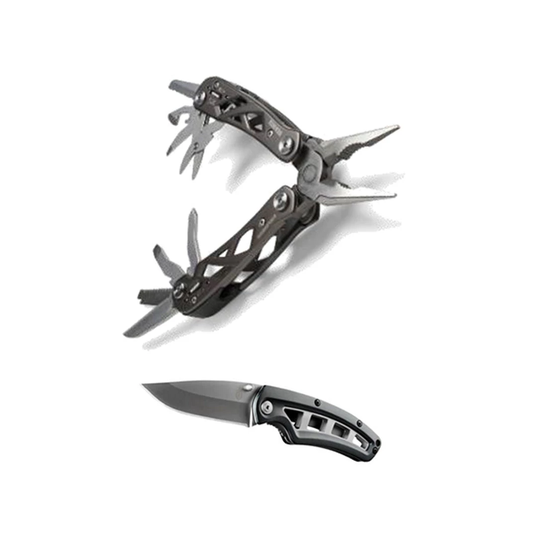 Inspired by the bridges of Gerberâs hometown in Portland, Oregon, the Suspension is an open frame multitool with spring-loaded pliers, our Saf.T.Plus⢠locking system, a fine-edge knife, serrated knife, rough cut saw and more. Housed in a ballistic nylon sheath, itâs a lightweight down-and-dirty workhorse.