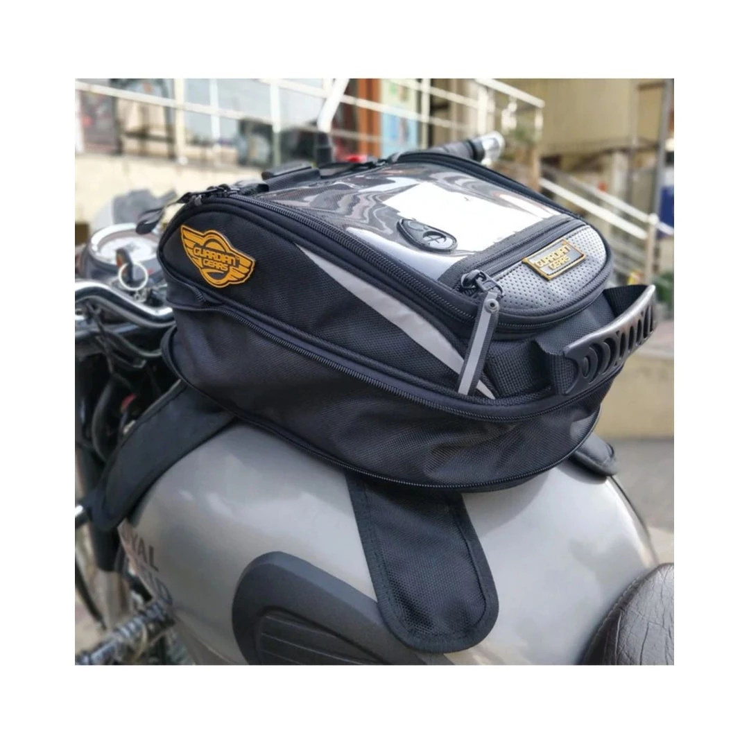 With a capacity of 11 liters and when expanded, max upto 18 ltrs, this magnetic tank bag may be used from daily use, touring, travel or short rides. Very useful to carry quick access items, bike documents, wallet, utility items and comes with a smart phone touch friendly pocket for easy navigation. One-year warranty against any manufacturing defect.