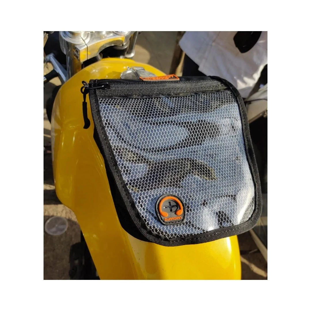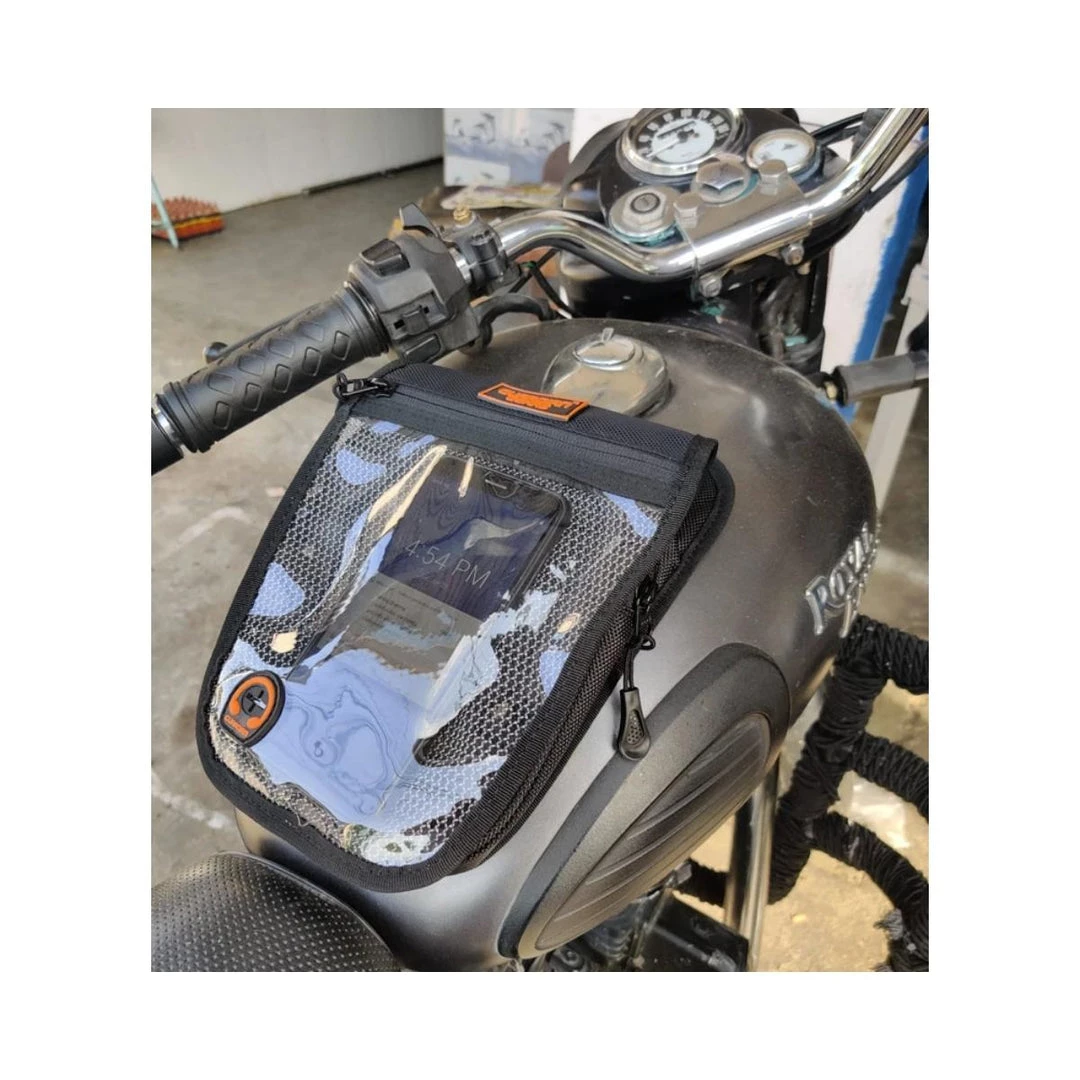 Wolverine Magnetic Tank Pouch, made with high abrasion resistant fabric, and 6 nos Strong Hold Rare Earth Neodymium Magnets for superior grip, makes this tank pouch suitable for ALL MOTORCYCLES with METAL TANKS. It will hold a mobile phone up to 8″ in size, inside the touch friendly transparent front pocket. Inner flap pocket you can keep your bike documents, bike cloth, small nick nacks and other small items.