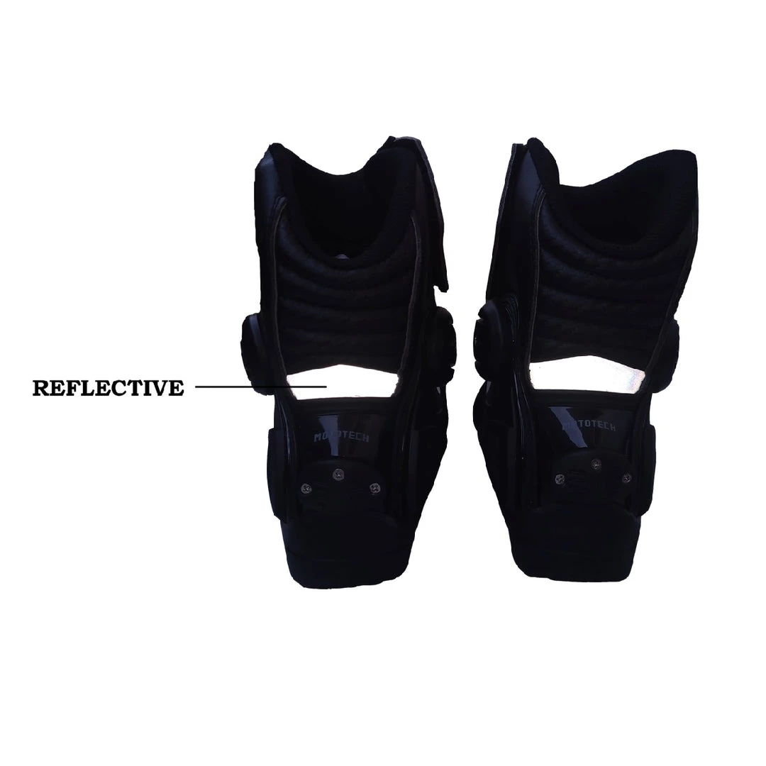 The boots provide adequate safety with protective reinforcement at ankle, toe and heel. A rider can effortlessly put on and take off the boots with the convenient zipper + velcro design. The sole is made of Natural Rubber to offer tough grip and allow a natural flex. The gear shift zone is reinforced to increase the longevity of the material due to the excessive use of that area.