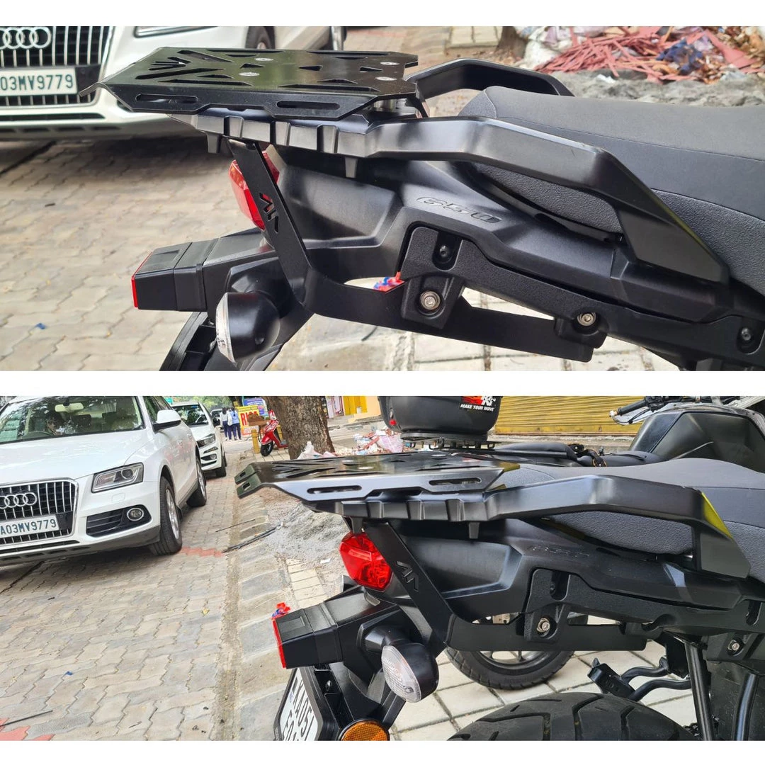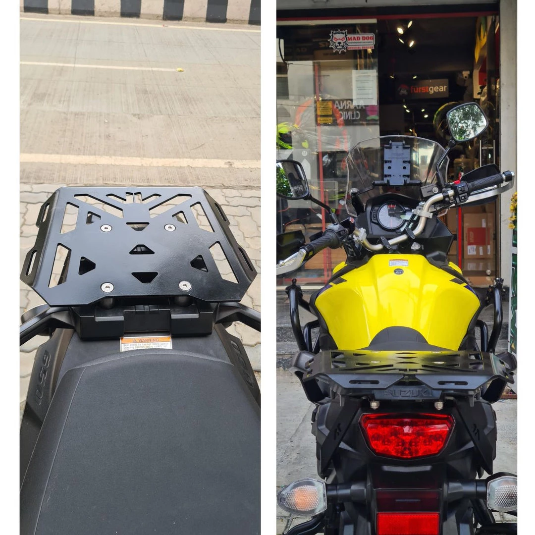 Motourenn brings you the best in class top rackย for your Suzuki Vstrom 650. Designed keeping in mind not to disturb the Adv look, while making sure all your needs are met – be it mounting your tail bags, top box or even your groceries that your mom asked you to bring home.