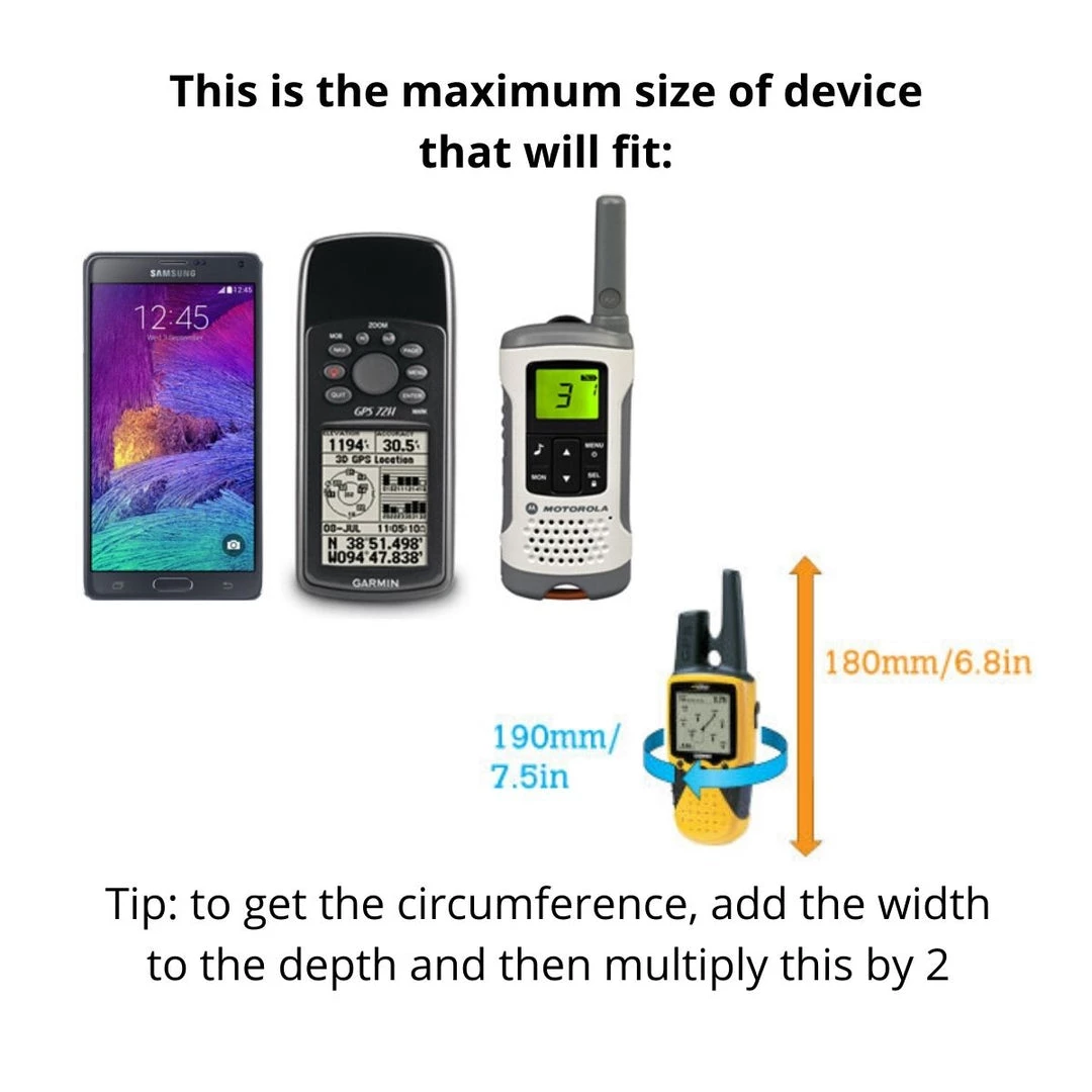 This case fits large GPS, walkie-talkies and any phone up to iPhone 6 Plus size