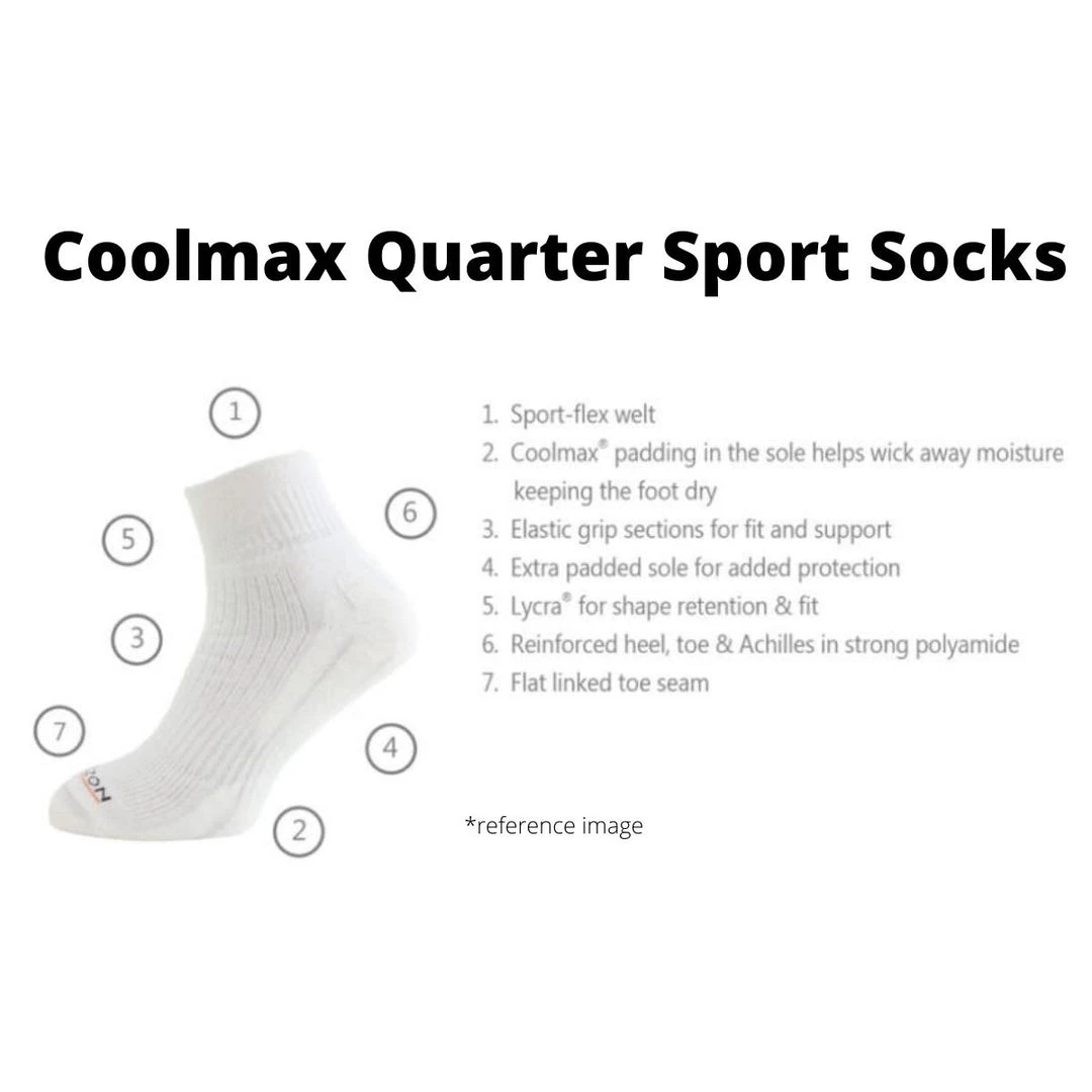 The blend of fast wicking Coolmax and super soft combed cotton is ideal for keeping the feet in great shape. The socks have grip sections to prevent any unwanted movement within the shoe that can cause blisters and a flat linked toe seam for added comfort. Ideal for all sports, especially running, cycling and racquet sports.