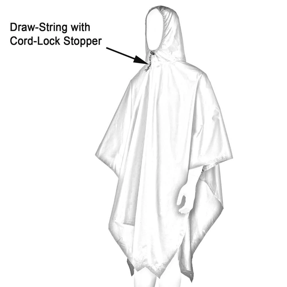Designed for use in the heavy rains, the QuipCo Thunder Rain Poncho is welded at every joint. No stitching at joints, thus negating any penetration of water at joints.