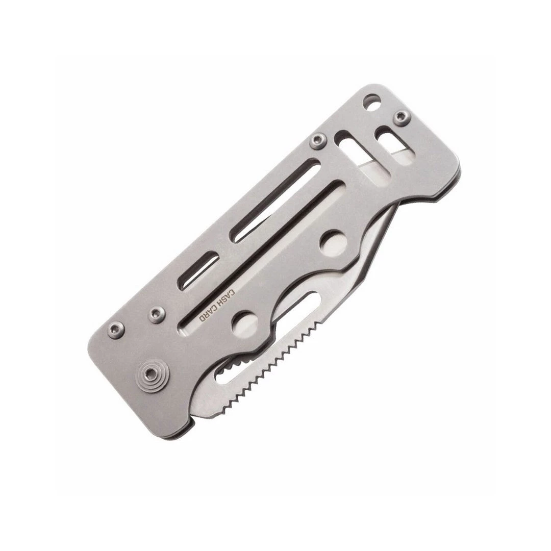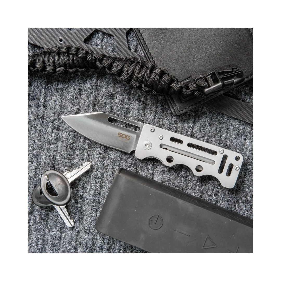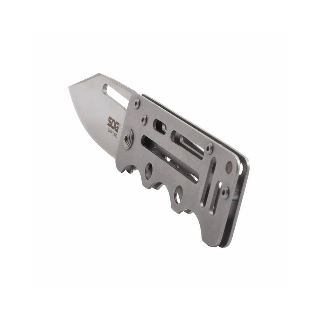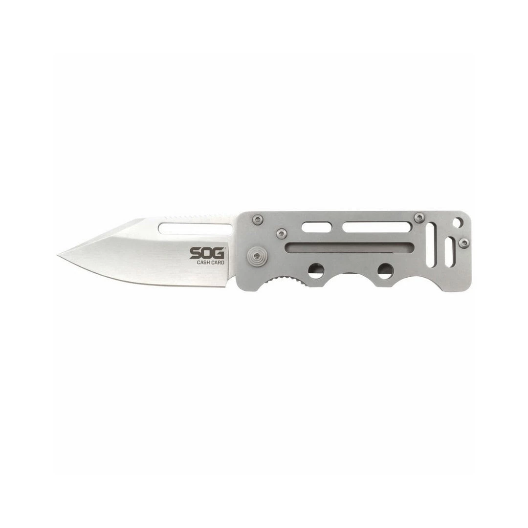 Simple, light, and compact, the SOG Cash Card is a minimalist’s dream knife. It boasts a durable blade in a slim profile that easily conceals in any pocket. Clip it to the inside of your pocket or use it as a money and card clip, it ensures that you have everything you need to survive in the modern world. The well-designed handles, while thin, are comfortable to hold and use. Due to the full-metal construction, the Cash Card can endure years of abuse. The skeletonized structure keeps weight and bulk to a minimum even with its solid liner lock mechanism and 2.75-inch blade. Despite the small size, the Cash Card can still give you maximum versatility as a go-to pocketknife. Part# EZ1-CP