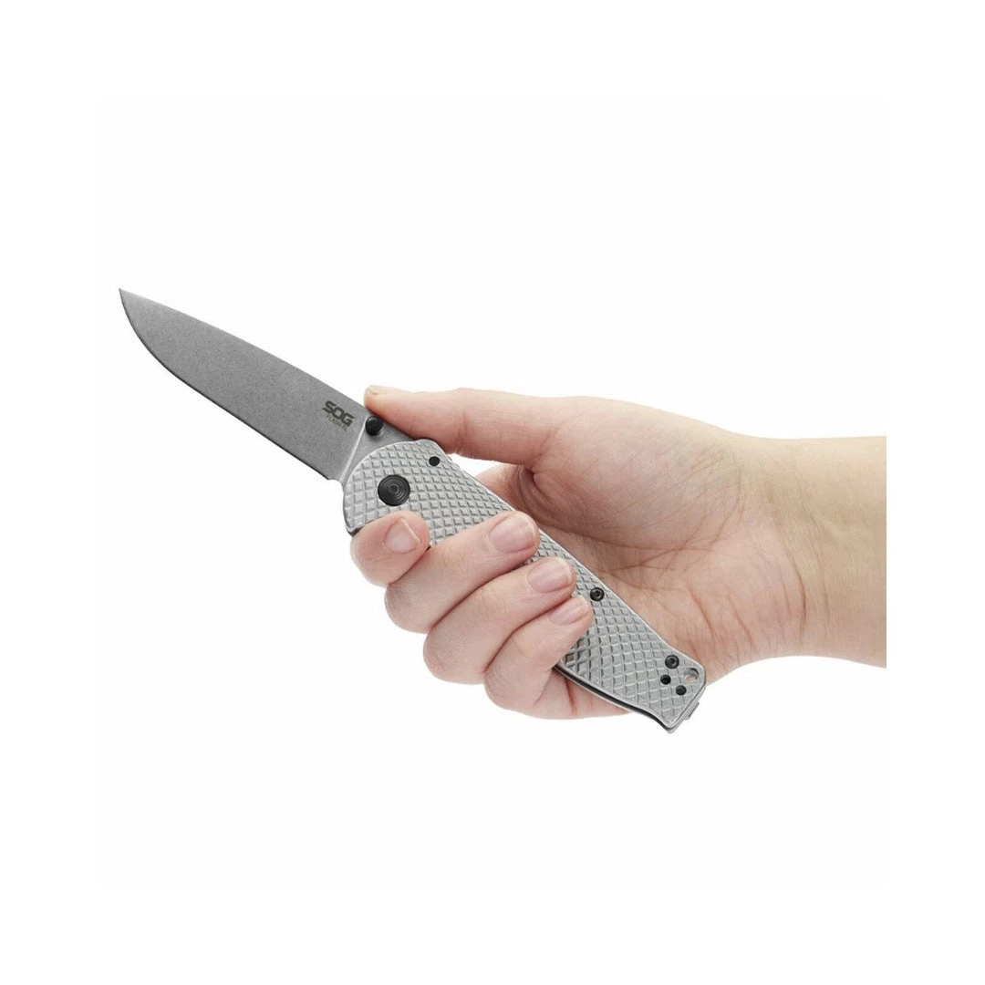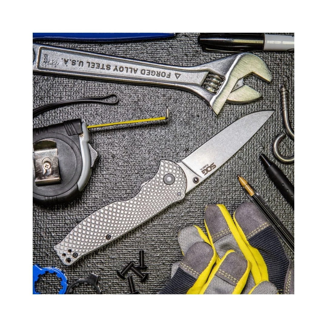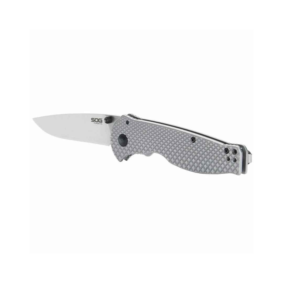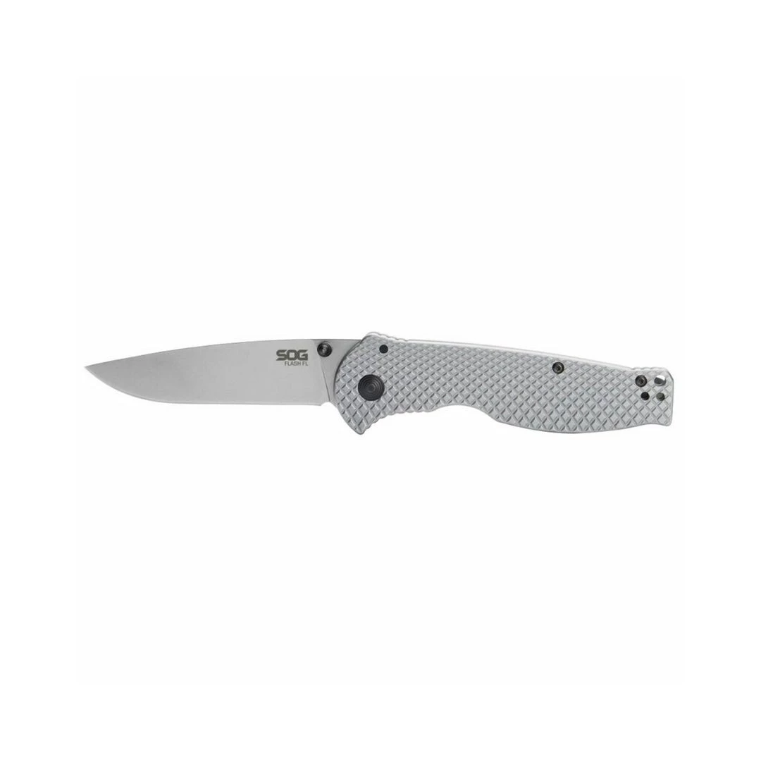 Sometimes a simple, honest knife with a SOG Sharp blade is just the trick. The Flash FL brings just that: a no-nonsense, all-metal construction, frame-lock folder, featuring thumb stud deployment, built on a proven SOG platform. Flash FL is the perfect entry-level knife built to last featuring a slim form-factor, textured handle, and a reversible, deep-carry pocket clip. Item 14-18-01-57