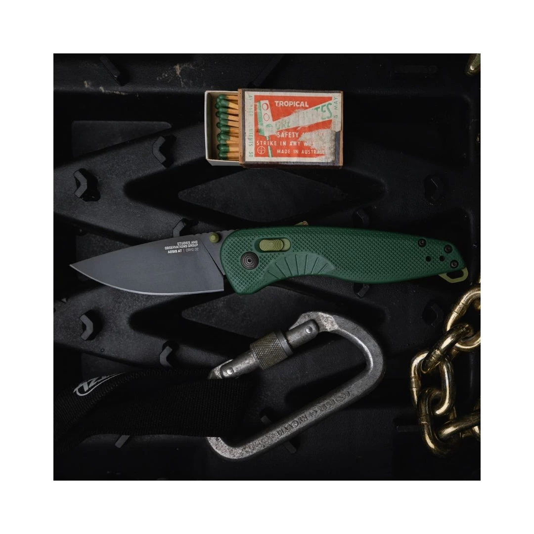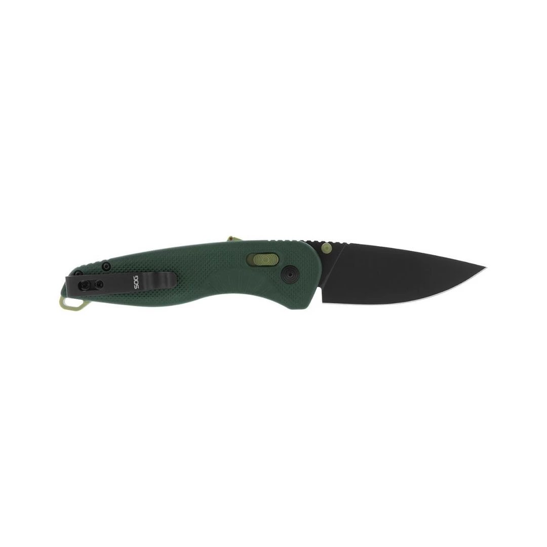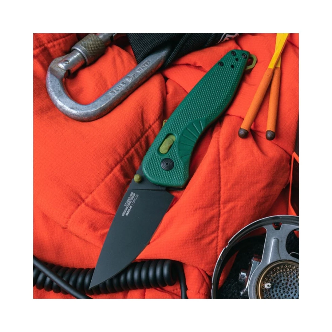 Designed for outdoor users, Aegis AT features rapid assisted opening with SOGās innovative ambidextrous AT-XR Lock with an ergonomic handle and grip pattern for comfortable use. Aegis AT is easy to carry, with a highly functional 3.1″ cryogenically heat-treated D2 steel blade. Its powerful XR locking mechanism also features solid built-in blade locking safety and spine-mounted safety system. This is the next evolution of the legendary Aegis. Part 11-41-04-57