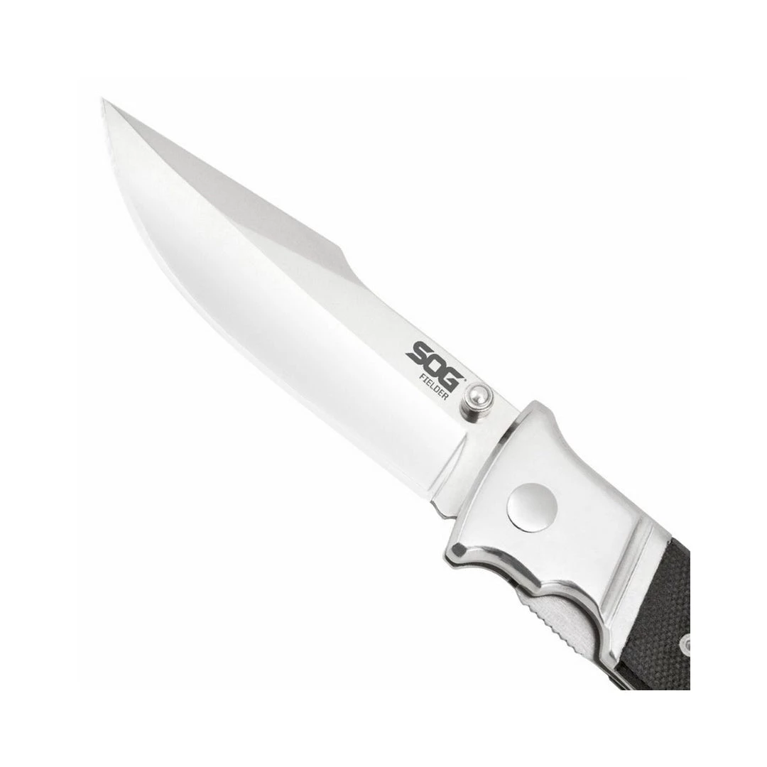 A smart looking folding knife, the new Fielder G-10 is the latest addition to SOG’s gorgeous Fielder line. The stainless steel and G-10 handle give this model a classic look and the 3.3-inch blade is easy to open with either hand. The Fielder G-10 is the perfect addition to a knife collection that emphasizes both aesthetics and functionality. Indeed, it’s designed as a do-it-all everyday knife. Item FF38-CP