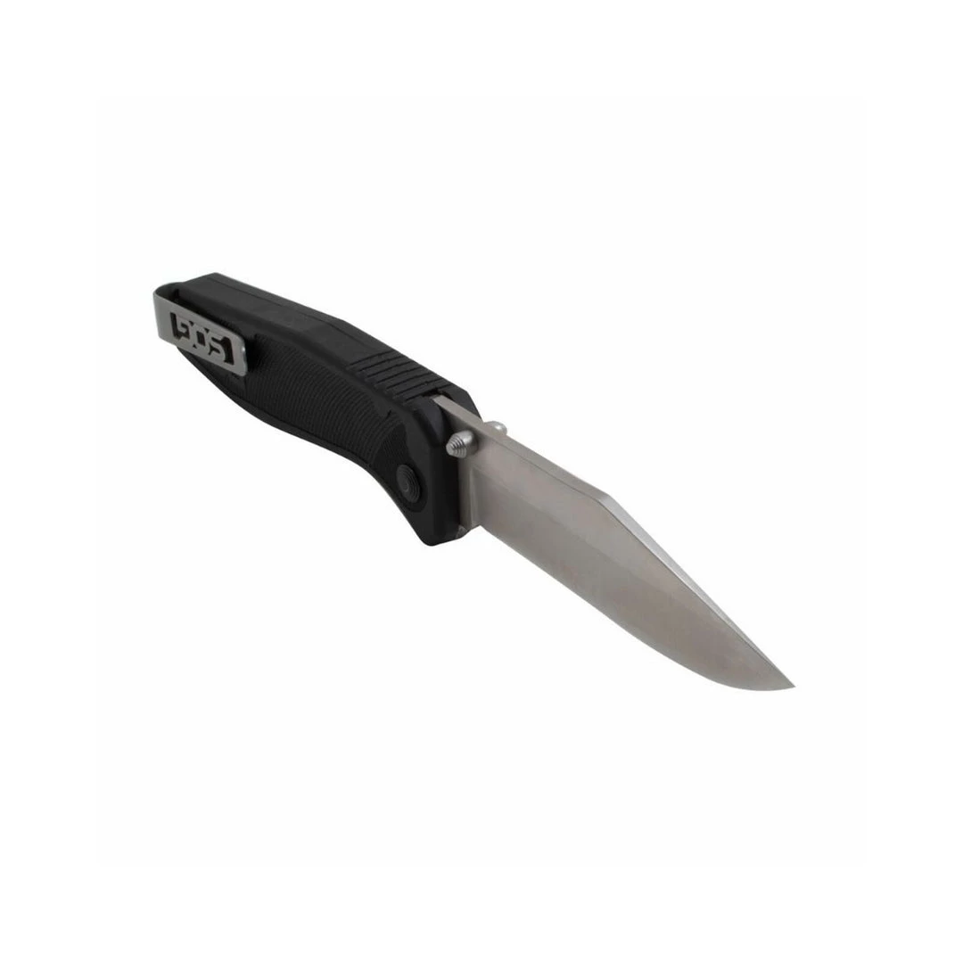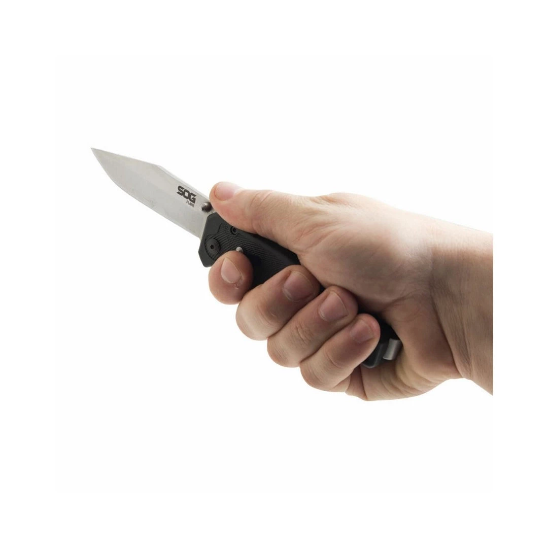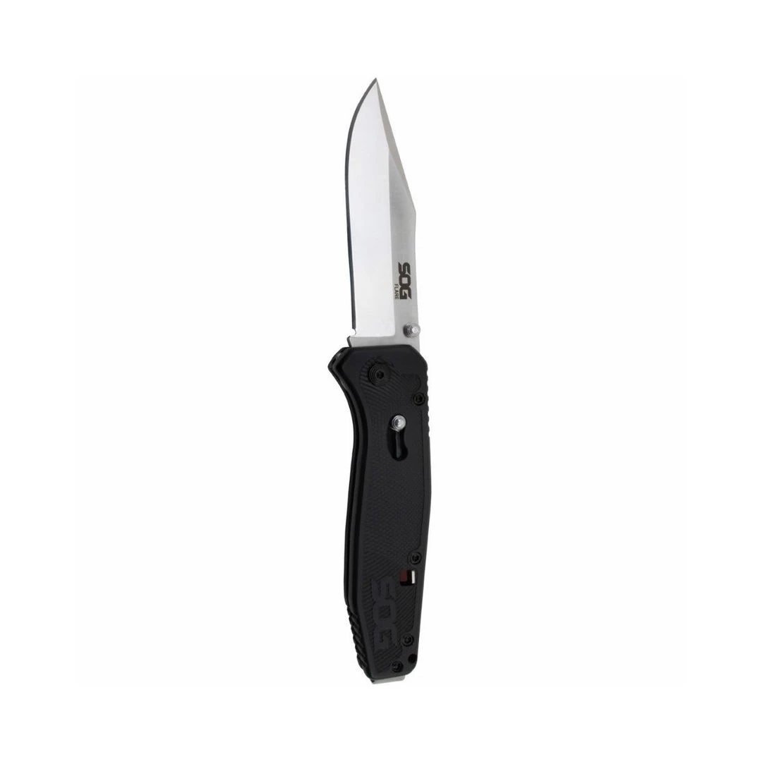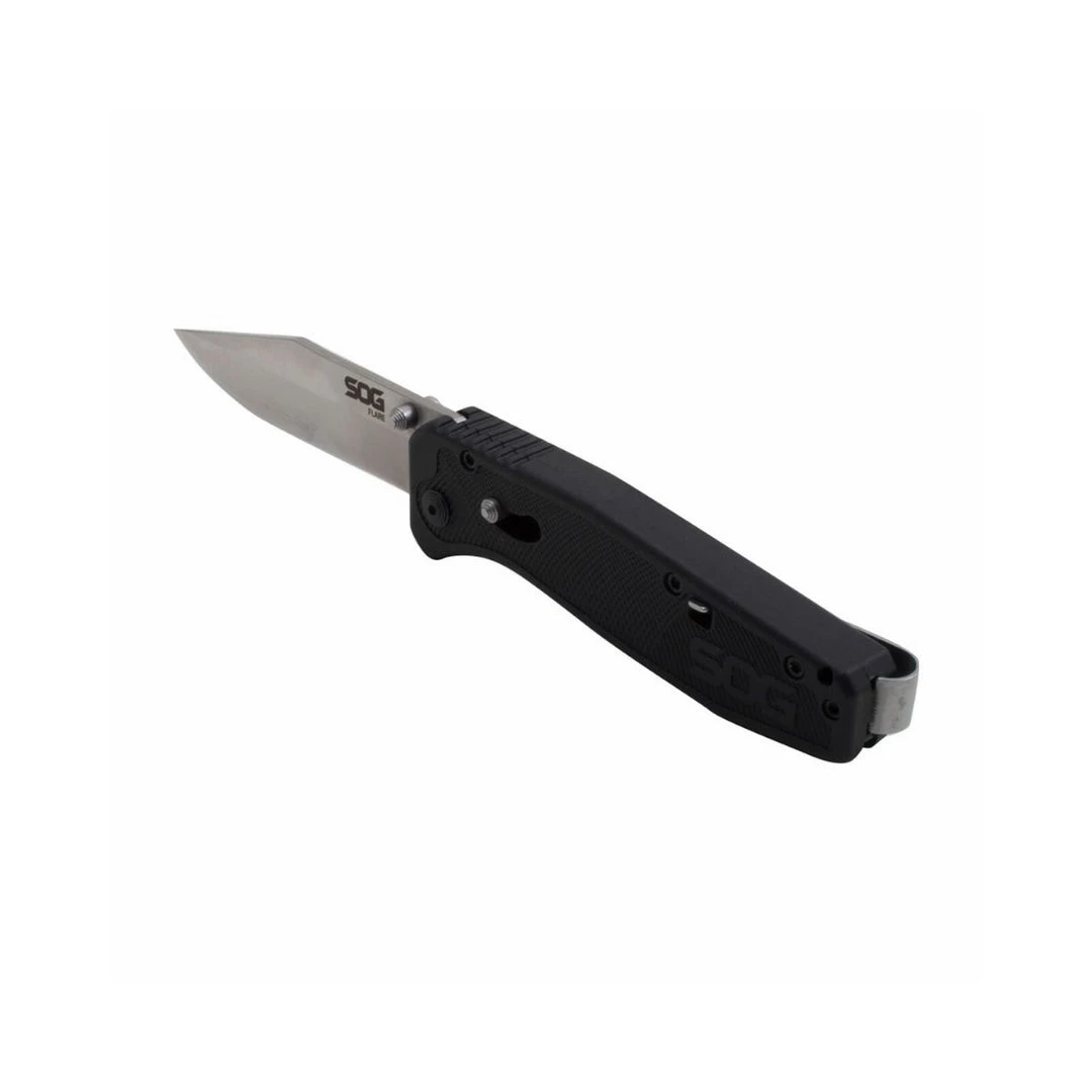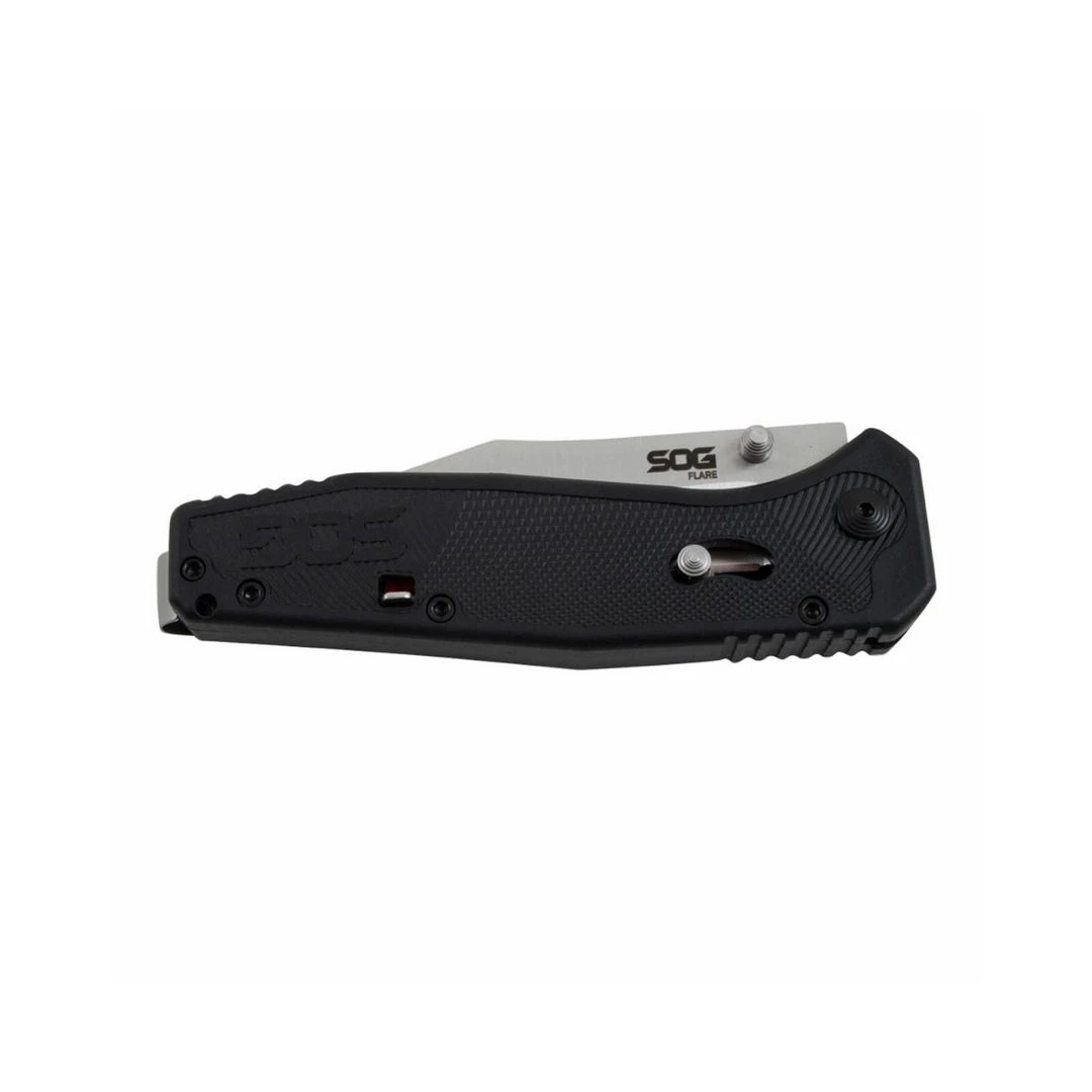 If you’re looking for a great folding knife, look no further than the Flare assist. Featuring our patented SOG Assisted Technology (SAT) opening system, the Flare opens with authority. The lightweight but strong glass-reinforced nylon (GRN) handle and a clip point blade that provides durability and versatility. The Flare is very slim and also includes our trademark reversible low-carry pocket clip, so you can carry it everywhere with confidence. Item FLA1001-CP