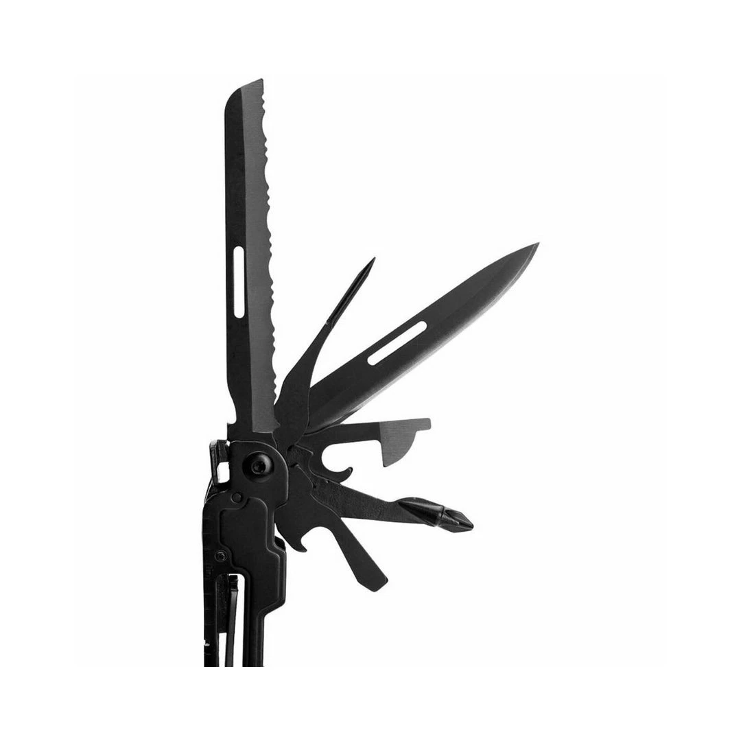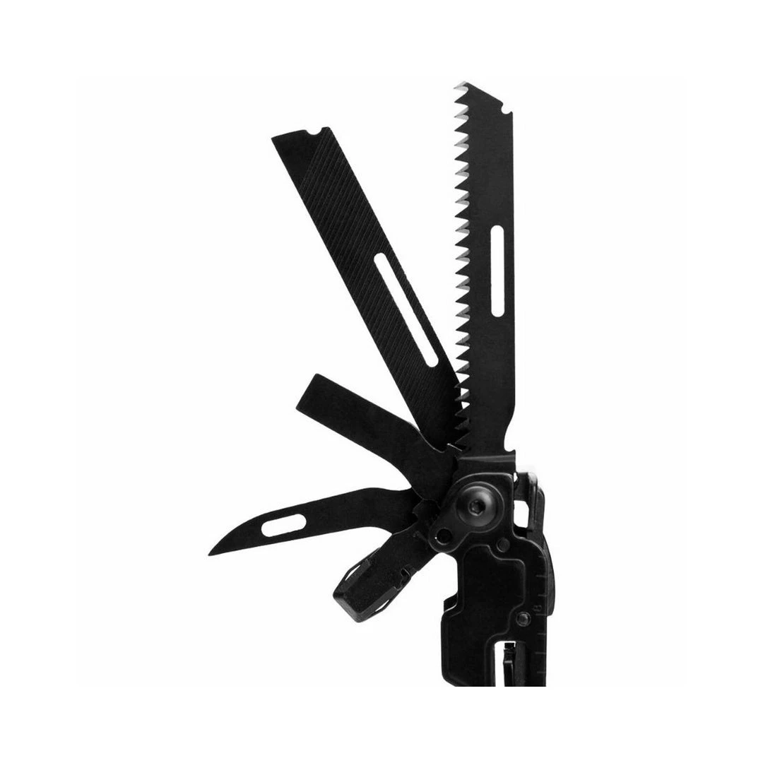 Features Compound Leverage plier heads for smooth open and close and increased gripping power. A total of 21 tools are on the heavy duty, stainless steel PowerAccess Deluxe including two knife blades, can & bottle opener, wood saw, two flat screwdrivers, Phillips screwdriver and a 1/4″ driver with hex bit kit