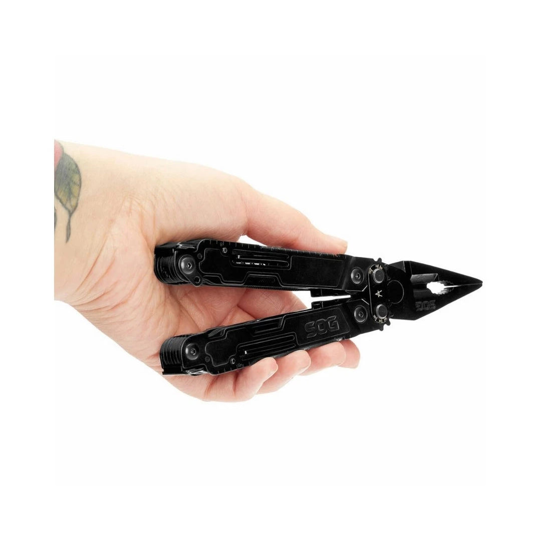 SOG’s proprietary Compound Leverage technology works by employing multiple pivot points that generate greater handle travel in relation to plier movement. The result is a leverage advantage of approximately twice the power of a conventional multi-tool, which makes every cut smoother and easier.