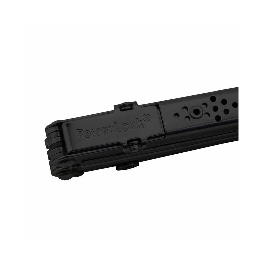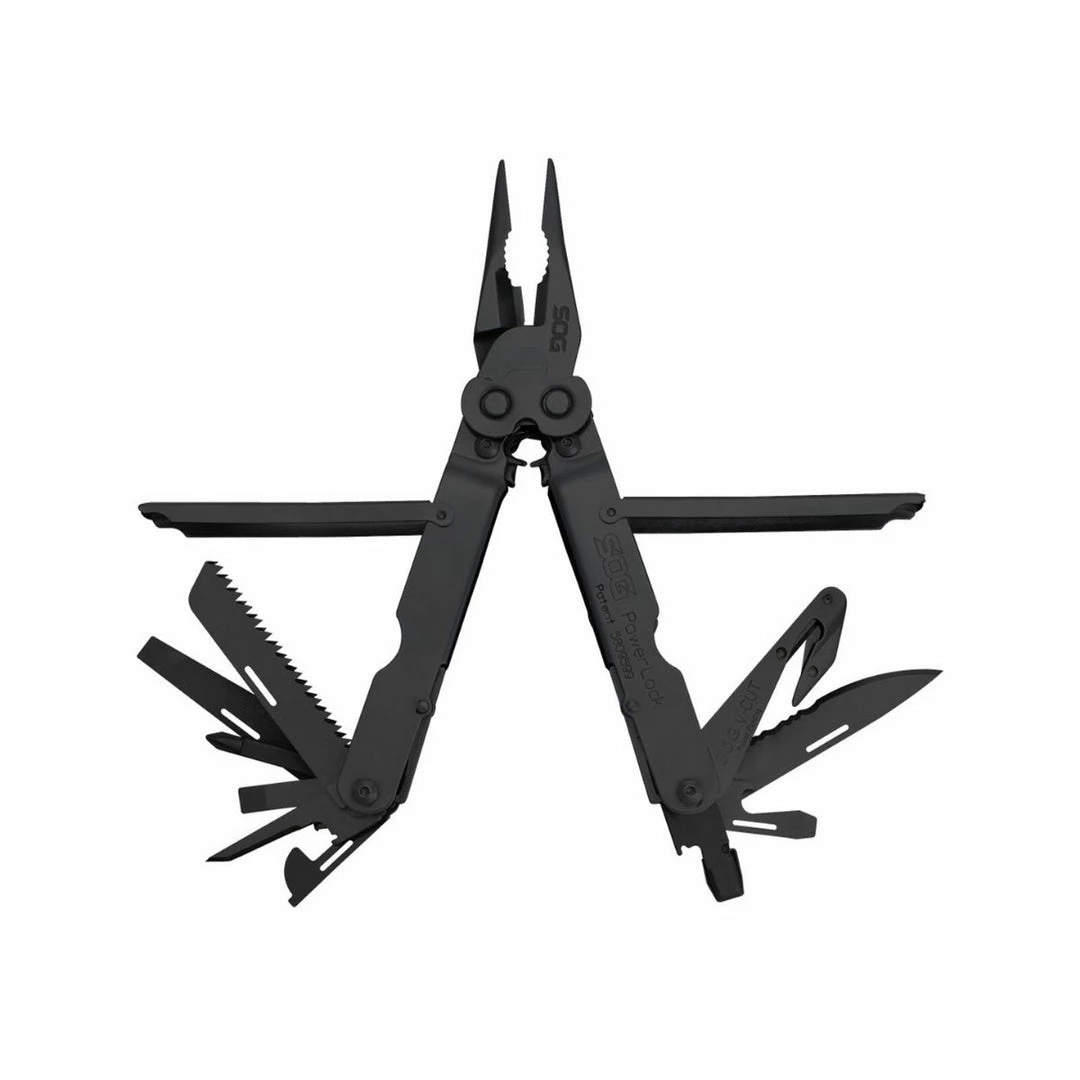 18 TOOLS PACKED IN THE HEAVY DUTY POWERLOCK: Includes pliers, gripper, hard wire cutter, wire crimper, blasting cap crimper, double toothed wood saw, partially serrated blade, 3-sided file, large screwdriver, Phillips screwdriver, 1/4” drive, awl, can opener, small screwdriver, bottle opener, medium screwdriver, v-cutter, and rulers.