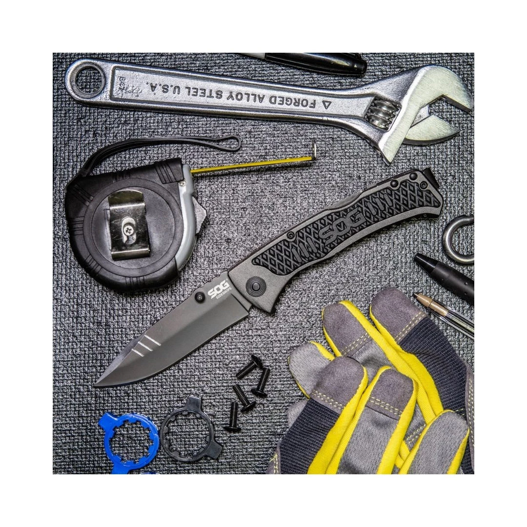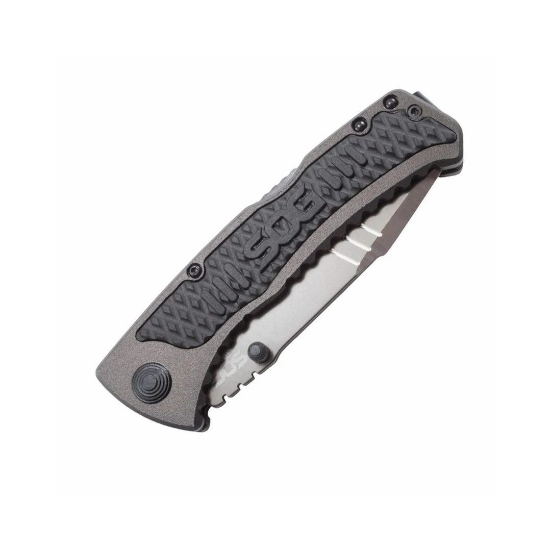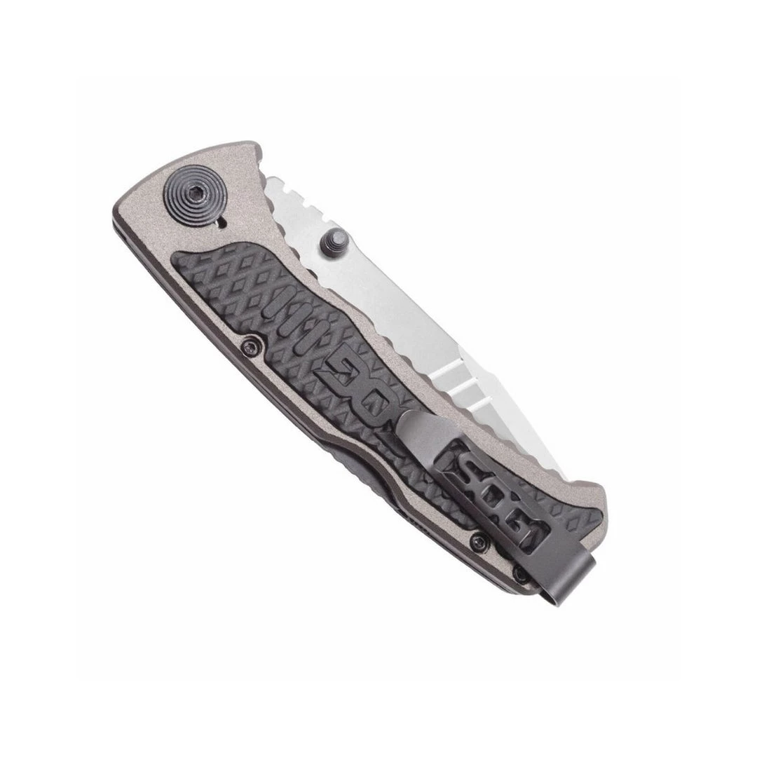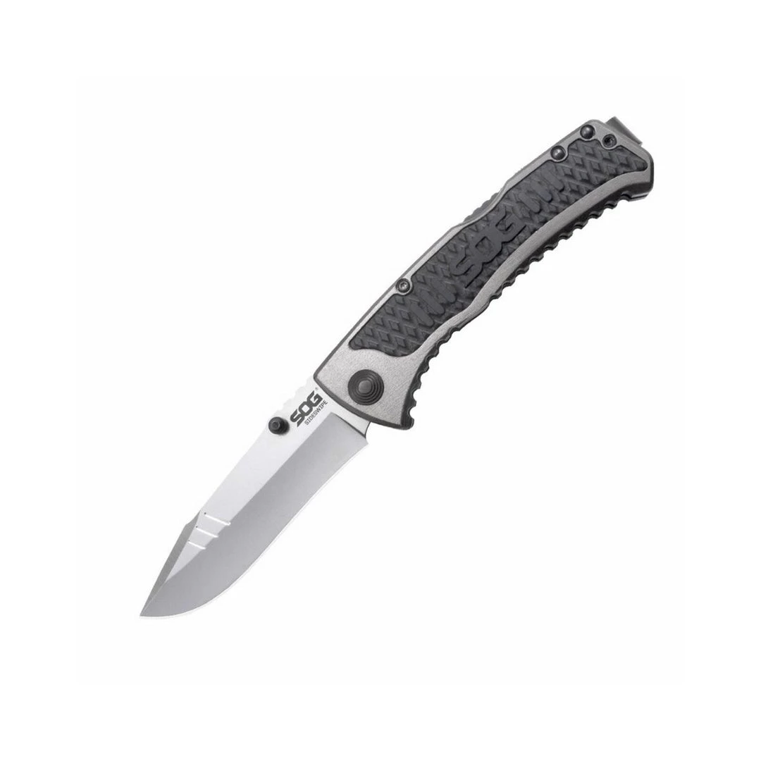 Salient Features: Folding knife with SOG’s SAT opening, a 7Cr15 stainless steel, an aluminum and GRN handle and a reversible, low-carry pocket clip.