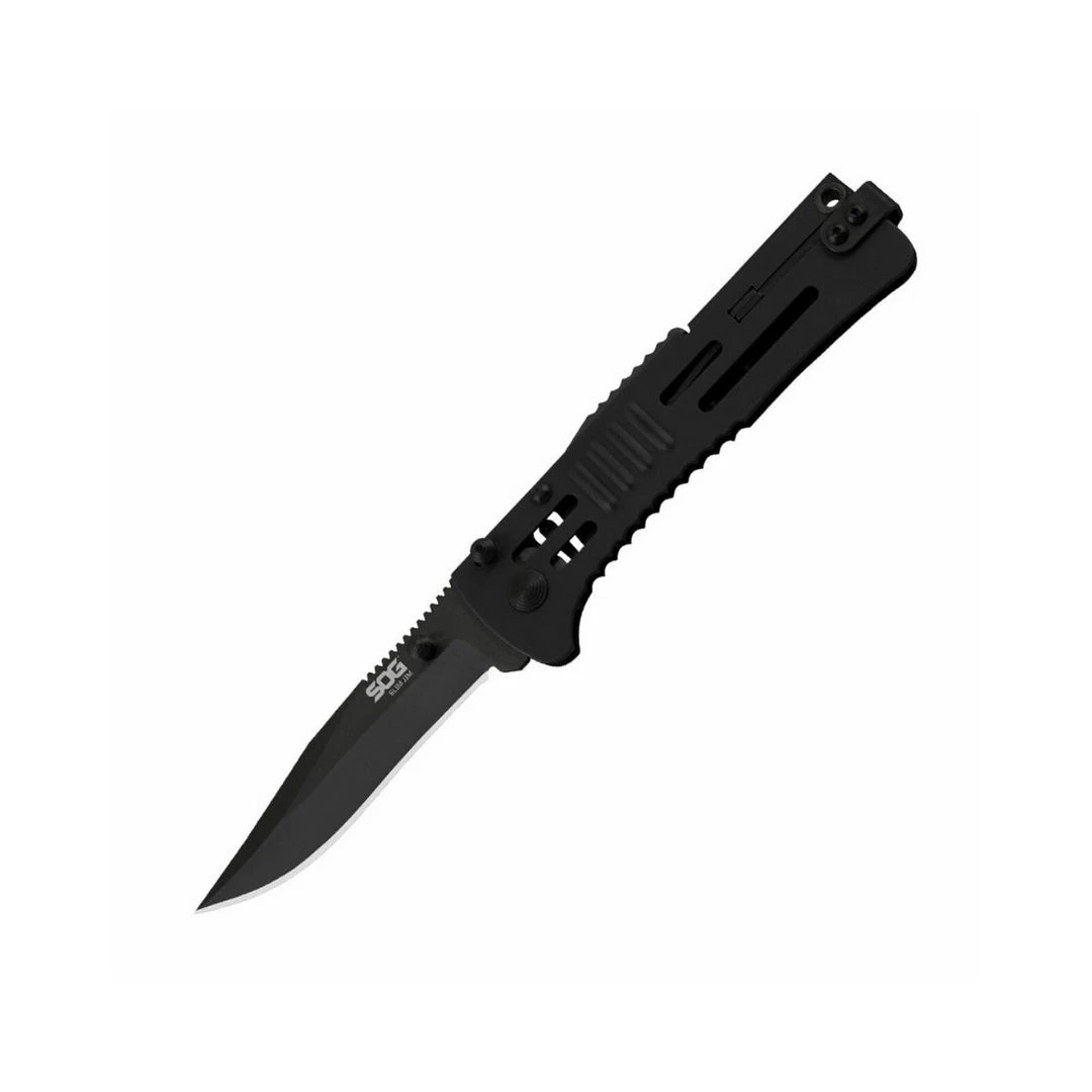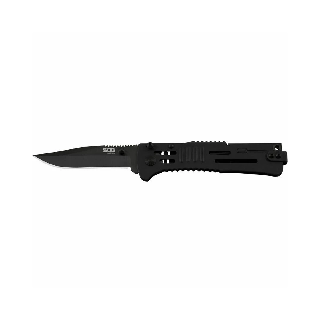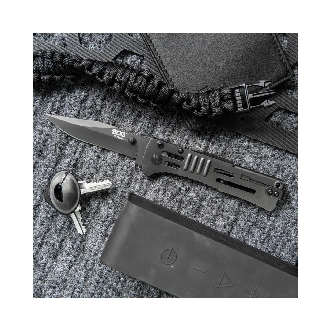 Maybe the slimmest assisted opening knife available:ย Thin, slim and an ideal daily carry option, the Slim Jim has an AUS-8 steel blade, SOG’s Assisted Open technology and a reversible low-carry clip. Strong long-back design keeps the blade safely open.