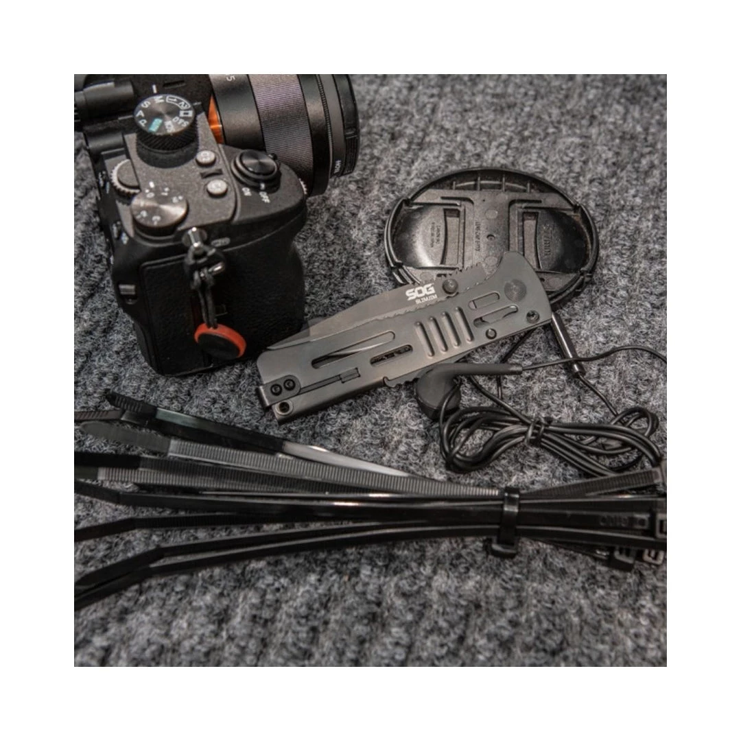 Our technical assisted folding knife line stands out by virtue of simplicity and minimalism. It doesn’t try to be the biggest or the loudest in the crowd. It is unobtrusive but always there when you need it. Constructed from a single piece of steel, SlimJim is just that, the slimmest assisted knife in the world. Start to open the blade and let SOG Assisted Technology (S.A.T.) finish the action with a bang, using one of the surest assisted technologies out there. Tactile bumps and cutouts aid in control while all features are purposeful and functional. The patent-pending safety is used to ensure the retention of the blade in the handle as well as acts as a double lock in the open position. The stealth carry clip is reversible. Item SJ32-CP