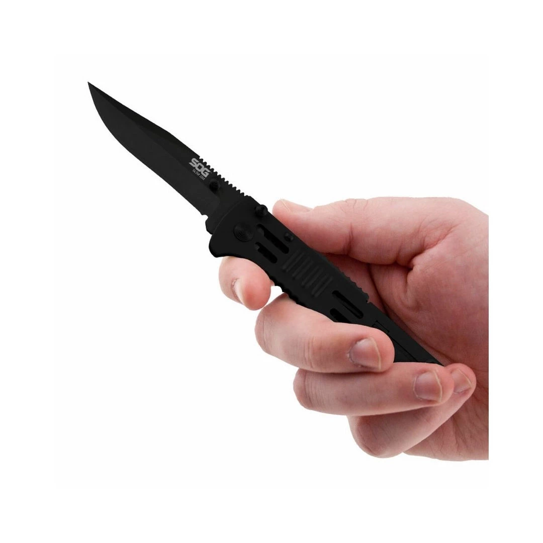 SOG ASSISTED TECHNOLOGY:ย SAT opens the knife with a bang and locks it securely in place.
