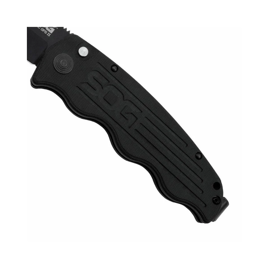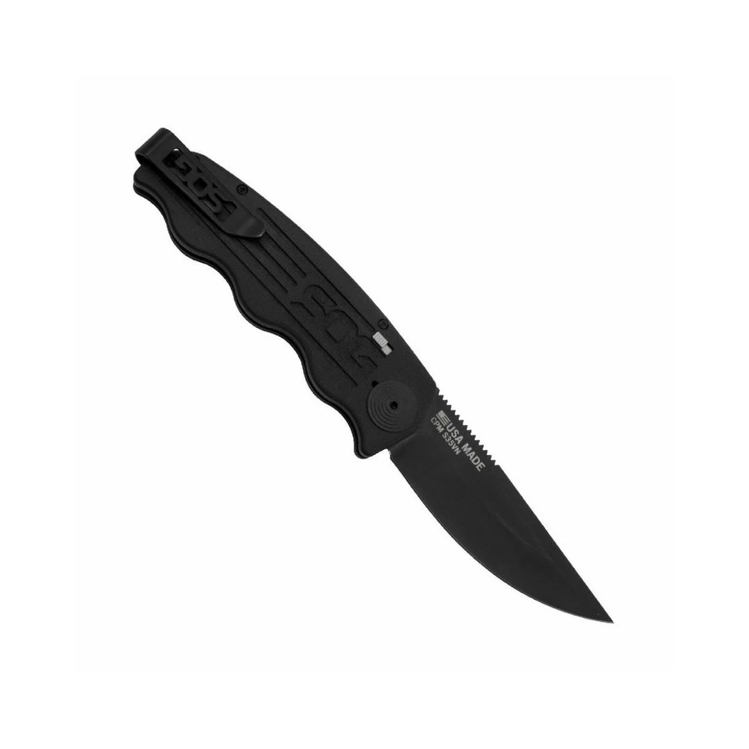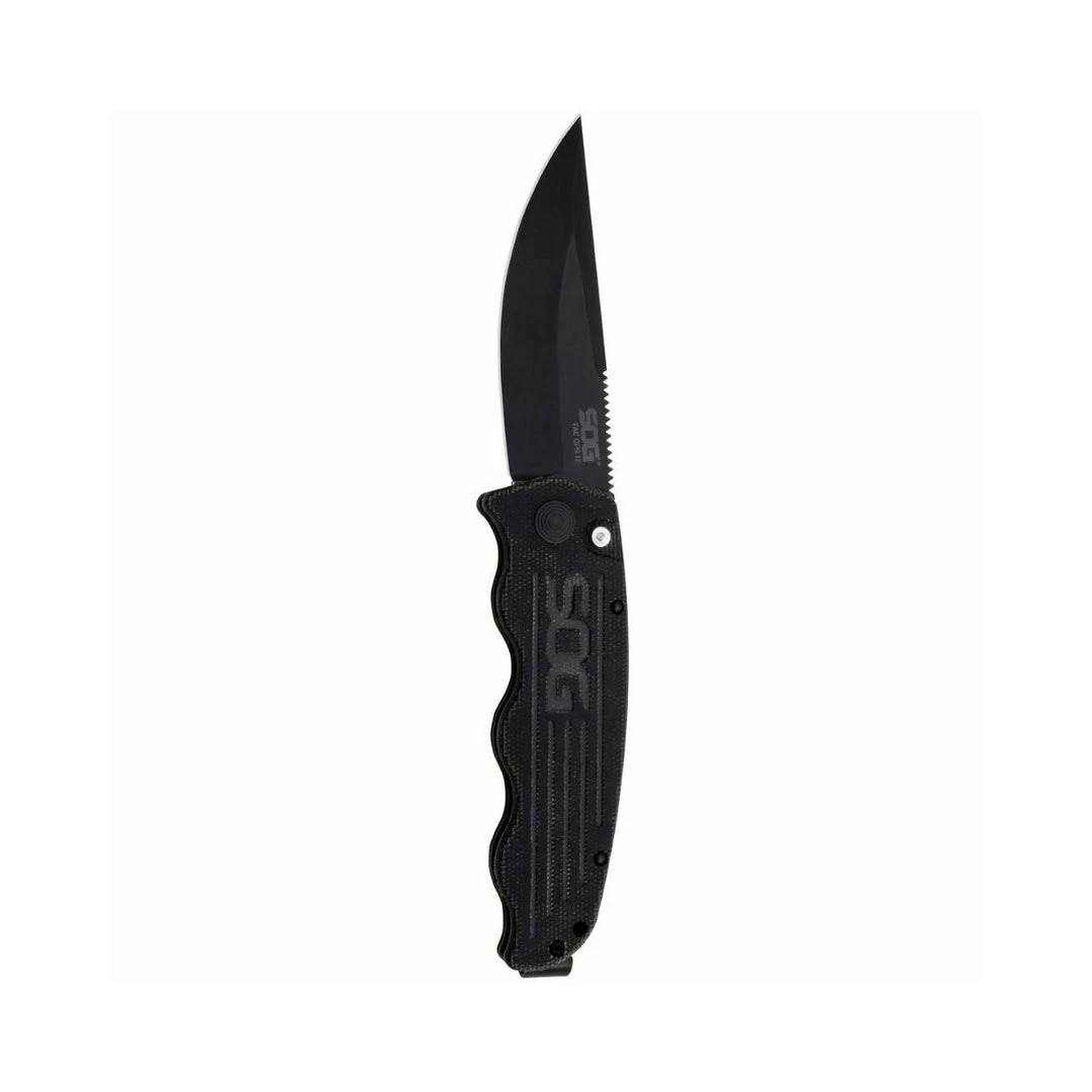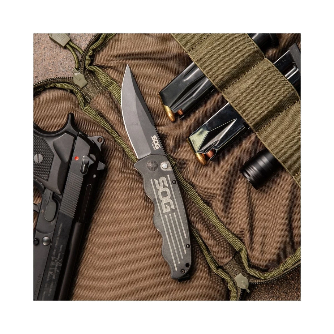 Based around superior CPM S35VN steel, SOG’s USA produced knives offer improved toughness, better edge retention, higher resistance to wear and edge chipping while maintaining ease of sharpening. The TAC OPS is a USA-made fully-equipped, heavy-duty folder with an automatic CPM S35VN blade with a black Cerakote coating housed in a linen Micarta handle with stainless steel liners. Based around the SOG-TAC series, TAC OPS offers a counteoured handle and upswept blade, making it ideal for self-defense. With quality materials made in the USA, TAC OPs is a powerful folder for the toughest situations. TO1011-BX