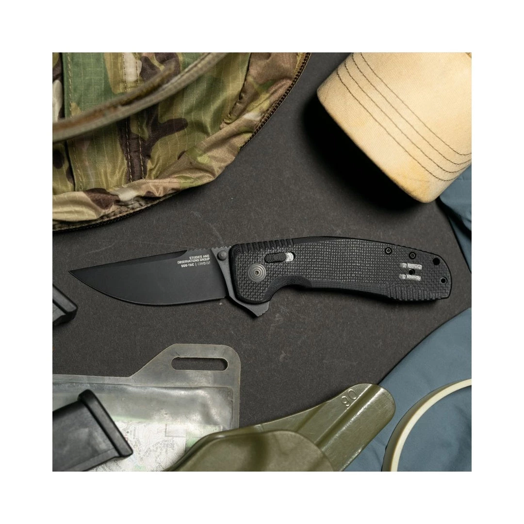 CRYO D2 STEEL: A versatile high-carbon tool steel that is cryogenically heat-treated to SOG’s unique performance specifications. D2 provides the ideal combination of edge retention and durability for long term use with ease of maintenance.